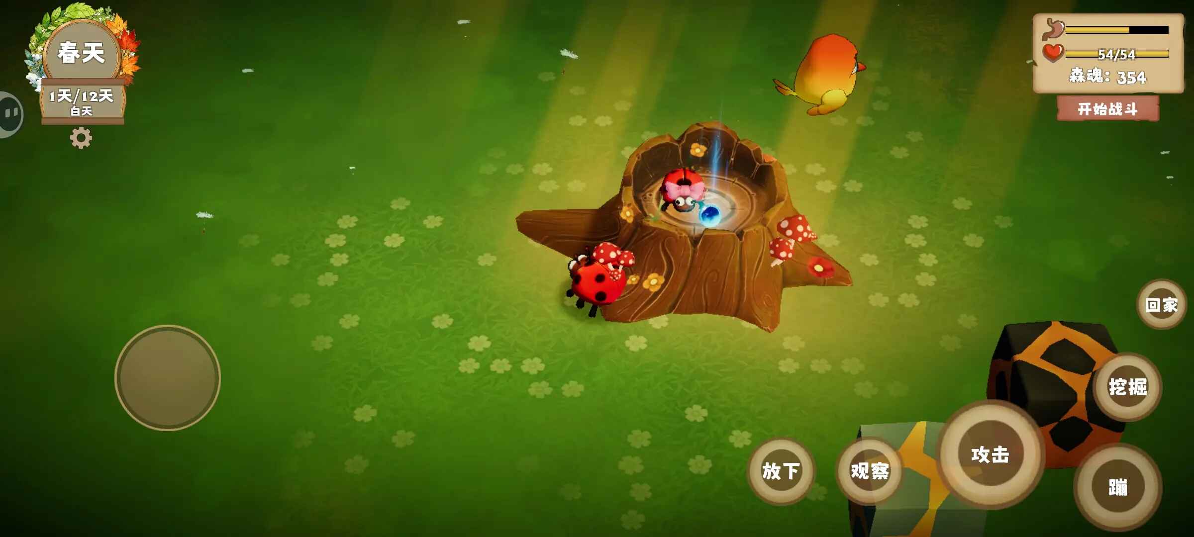 4.角色具备基础攻击能力,可对小型竞争生物或入侵者发起驱逐行为,战斗机制采用简化版耐力条系统,避免复杂操作。