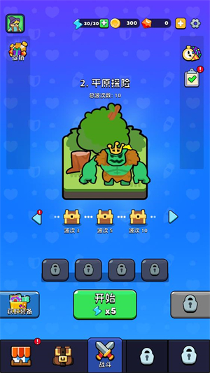 1.进入游戏后在主界面点击开始按钮进行闯关。
