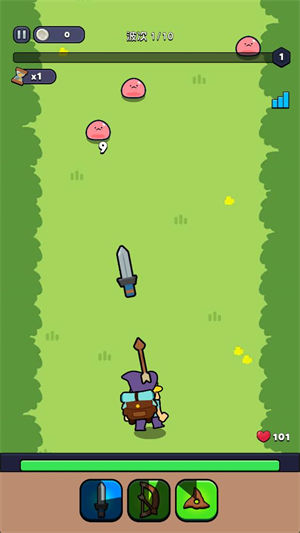 3.当放好武器后点击战斗就可以开始闯关,角色会自动投出武器来攻击敌人。