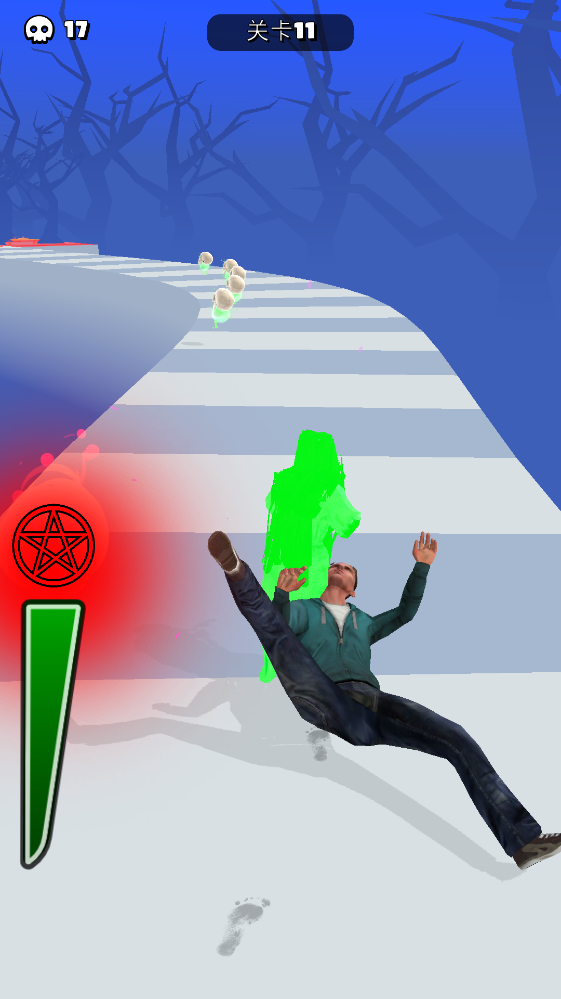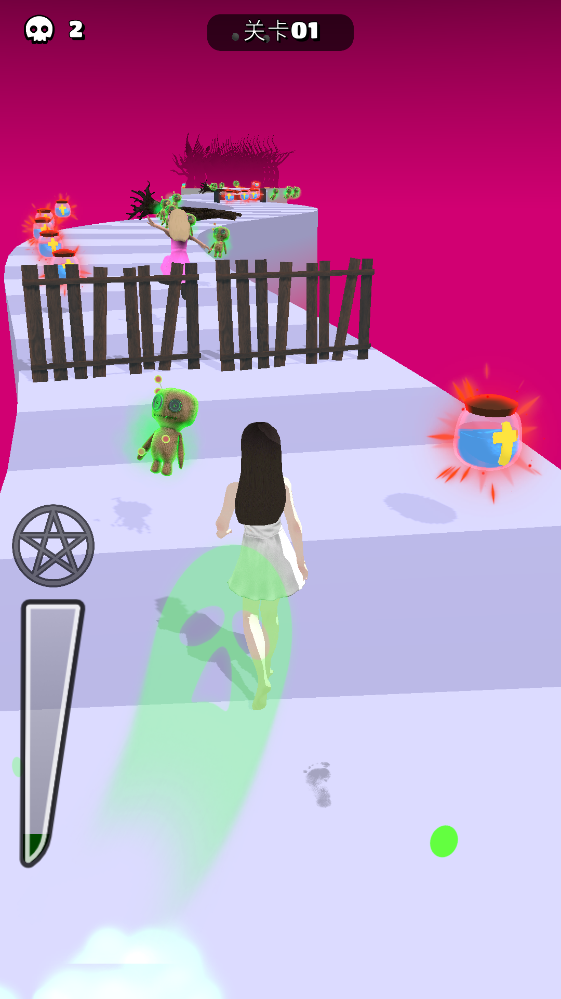 2.关卡中操控角色前进,躲避绿色怪物,接近目标人物。
