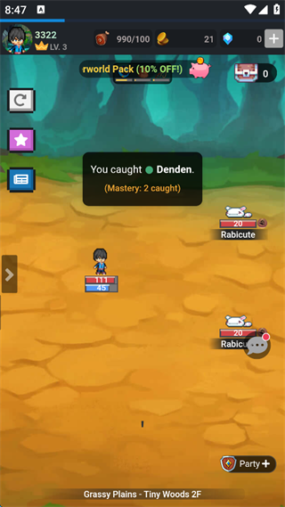 4.当捉住宠物后,会有提示,显示“You caught ...”。