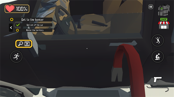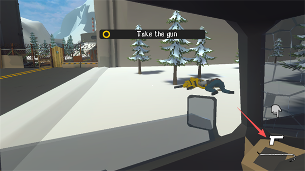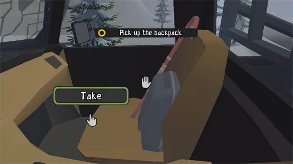 1.进入24号地堡游戏结束剧情,撞车后,视角向右移动,随后点击“Take”,拾取背包和撬棍。