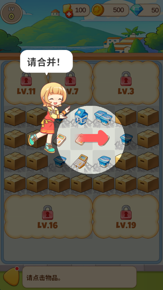 3.能够合并的物品非常多,拖动所有物品进行合并,完成任务。