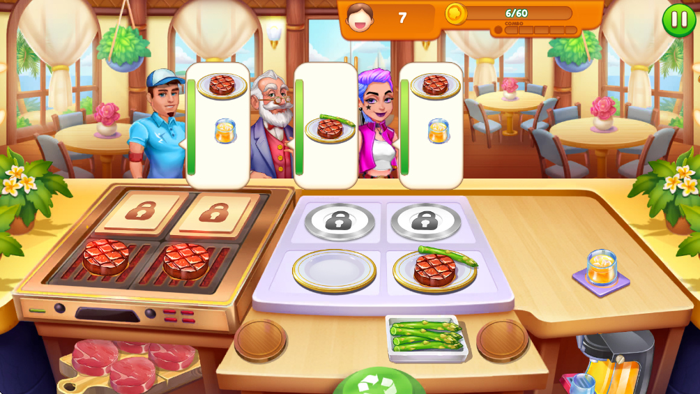 烹饪餐厅美食是一款结合了时间管理与餐厅经营的刺激模拟游戏,你将从一个小小的餐厅起步,通过精湛的厨艺和高效的服务,逐步建立属于自己的烹饪帝国。每个顾客的订单都要求你在极短的时间内完成,并确保食物的质量和服务的速度。你需要迅速应对不同的需求,不同的菜肴和复杂的订单将考验你的烹饪与组织能力。