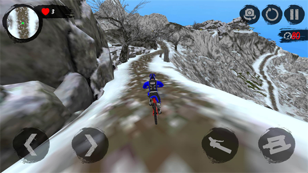 山地自行车速降是一款极限运动题材的冒险骑行模拟游戏,游戏将玩家带入一个充满险峻地形和不确定环境的山地世界,每一张地图都精心设计,融入了多种地形和气候变化,从雨雾天气到雪山高坡,再到烈日炎炎的沙漠,每个环境都将影响玩家的骑行操控和视野。玩家需要灵活应对各种变化,顺利通过重重障碍,并且在每一关中争取最快的时间,以赢得更高的分数和奖励。