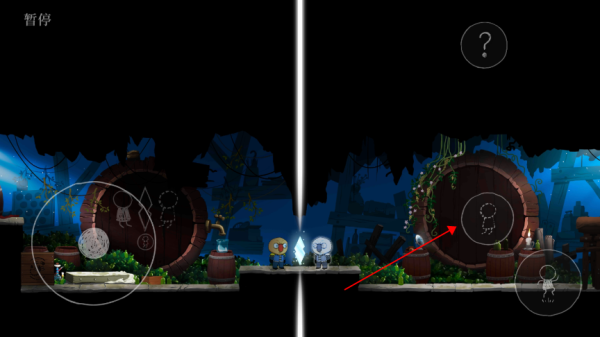 5、遇到图示情况需要去另一边时,点击下图箭头指向的图标,点击即可互换