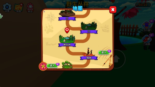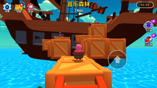 1.通过左侧屏幕来点击唤出轮盘,控制卡皮巴拉移动方向,右侧按键点击跳跃,不断向上跑酷冒险。
