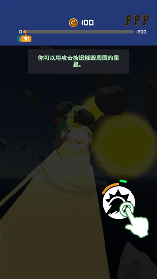 4.点击攻击按钮可以摧毁周围的星星。