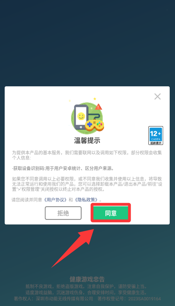 1.点击红色框框里的同意并进入游戏。