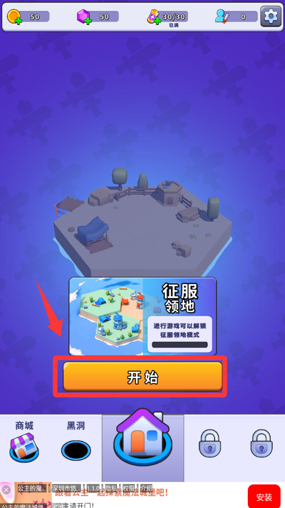 3.点击红色框框里的开始游戏并进入。