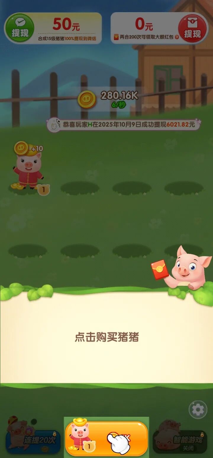 3.只要有金币就能一直进行购买,直到所有的位置都有猪猪,但不建议一次性买完。