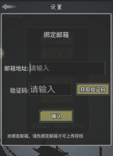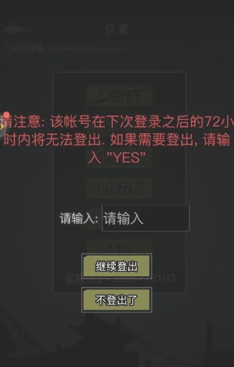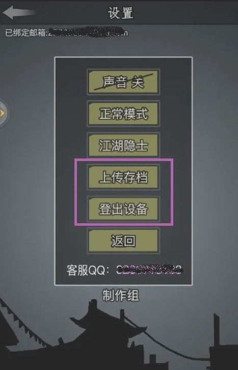 5.邮箱绑定后,返回进入到选项的设置窗口页面,在页面上可见“上传存档”和“登出设备”。