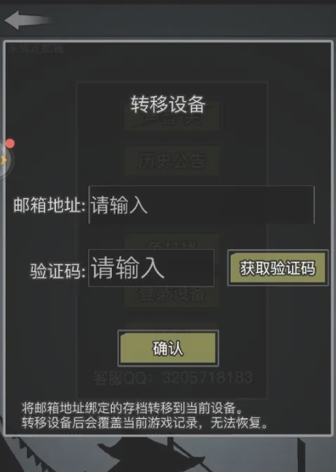 10.点击“登录设备”,弹出转移设备的登录页面,在页面上输入绑定的邮箱,并获取输入邮箱验证码,就可以登录以前的号了。
