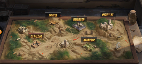 训练的项目有:日常军务(可获得粮食与银元,在指定时间可获得升级宝典及训练手册);战略行动(通过关卡获得训练手册及主角经验,此关卡随主角等级提升而开放);行军演练(通过闯关而获得军工零件及军备碎片,根据星级评分获得奖励);沙场点兵(根据其条件进行通关,获得大量的粮食与升级经验);组队演练(获得重要的将领道具,于主角45级开启);兵种特训(可获得兵种研修道具,加强兵种伤害,于主角60级开启)。