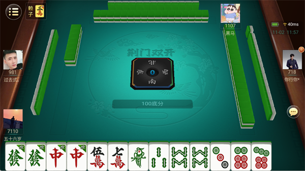 规则发牌,系统自动发牌,前面发牌的两位玩家28张,后面两位玩家27张牌。