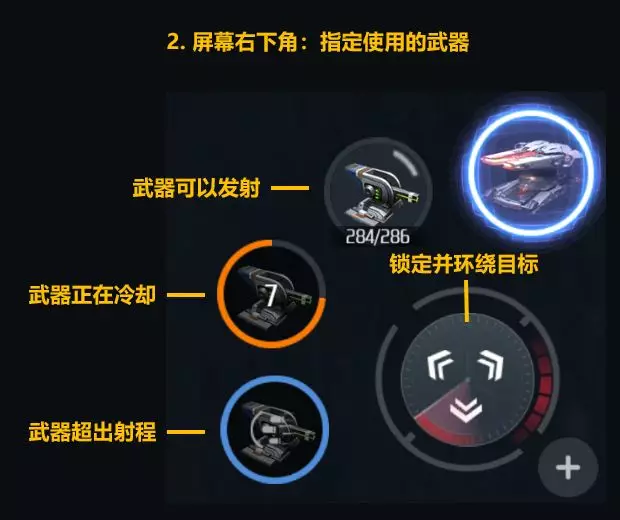 接着,点击屏幕右下角的武器按钮就能对目标发动攻击,武器发射后会进入冷却,同时距离目标太远时,武器会无法发射:
