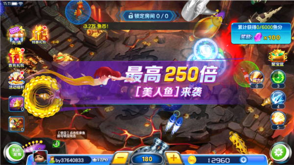 1、进入游戏,一上线就送超豪华的游戏礼包,协礼开始你的捕鱼之旅。