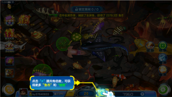 3、金币越多,升级炮台,可以发挥出更强大的力量。