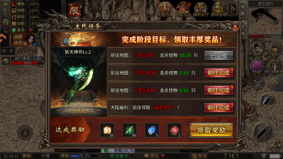 3、主线任务优先级最高,能完成就完成,主线任务可以开启更多提升战力的途径。