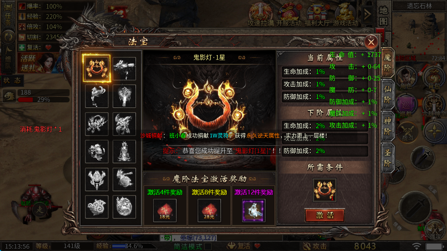 4、游戏中还有各种法宝,玩家尽量激活,可以提升相当一部分战斗力。