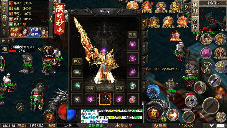7、玩家可以就直接转生,转生不仅可以提升玩家的属性,还可以帮助你进入更高级的地图,以帮助更高级的装备。