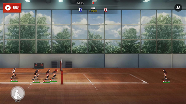4.进入比赛后点击右下方的按钮可以进行发球,发球后可以控制角色拦网和举球。