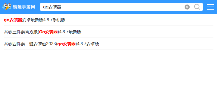 在我们蜻蜓手游网搜索页面点击搜索go安装器下载谷歌三件套