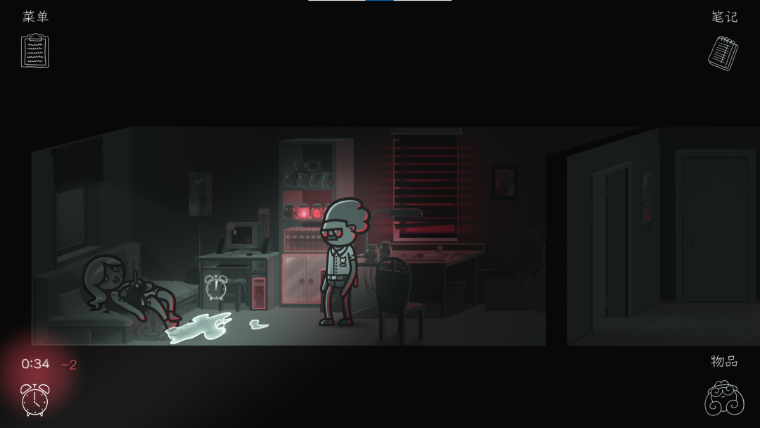 2、侦查就是跟场景互动检查物品,推理游戏必有的一项。