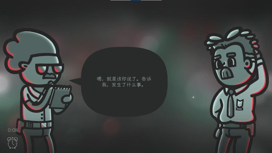 随着游戏的进展,侦查到的结果以及从不同人物那里了解到的不同事实会拓展问询的广度和深度。可以选择问询的内容多了,时间分配的重要性就体现出来了。