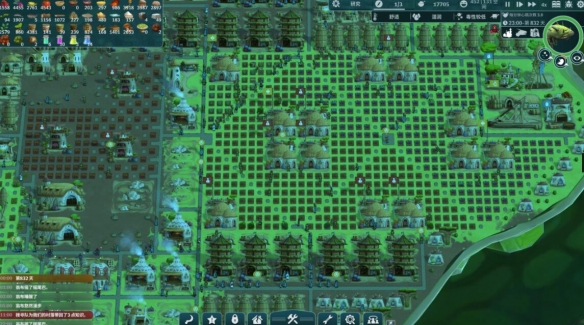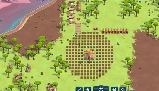 我们初始拥有16名村民。游戏也提供了1倍、2倍、四倍速功能,还有着详细的新手文字教程。第一件事便是伐木建造帐篷供村民休息了。巨兽的背上会缓慢长出莓果,采莓坊可以作为应急的低效食物获取方式。接着要给建造农场,并给他盘下一片地,随后可以安排至多五人在该农场劳作,低温下可以优先种植甜菜。种植作物需要水,贮风井在寒冷地带可以自动收集露水,有三四个贮风井再配套两个储水塔就可以支撑三四片农场的满负载运作了。资源堆积处和食品储藏库也要紧跟着建造作为低级仓库。