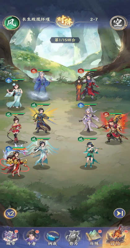 流派:开荒收割队队伍组成:药老+林修崖+任意火系角色*2+风系角色*2阵容分析:药老开局就能打出群攻,可放在一号位用于压低敌方血线,由二号位的林修崖收割,触发他的击杀再动完成清场。其他的火、风系角色提供羁绊,触发“双源争锋”组队加成(生命+10%、攻击+10%),实战中可不用出手。药老、林修崖练度足够时,本阵容可轻松打到第四章以上。注:玩家随指引进行第一次、第二次招募时,就能分别拿到林修崖和药老。