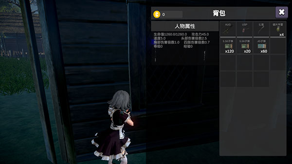 5、点击左上角即可打开个人背包,查看自身属性以及所持物品道具。