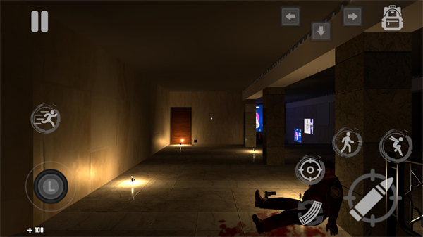 2、正式开始后左边控制角色的移动和奔跑,右边是跳跃、下蹲、瞄准、换弹和攻击按键。