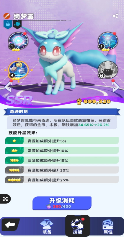 5、另外,玩家还可使用钻石来提升等级,以此提升帕萌的属性。