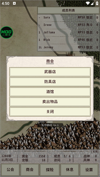 3、通过【商会】按钮可进入各类商店,使用金币购买武器、防具以及各种实用道具,为冒险做好充分准备。