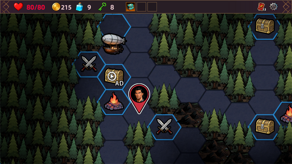 2. 采用六边形地图探索模式,极大增加了卡牌构筑容错率,通过驱散迷雾与不同区域交互,挑战多样游戏策略。