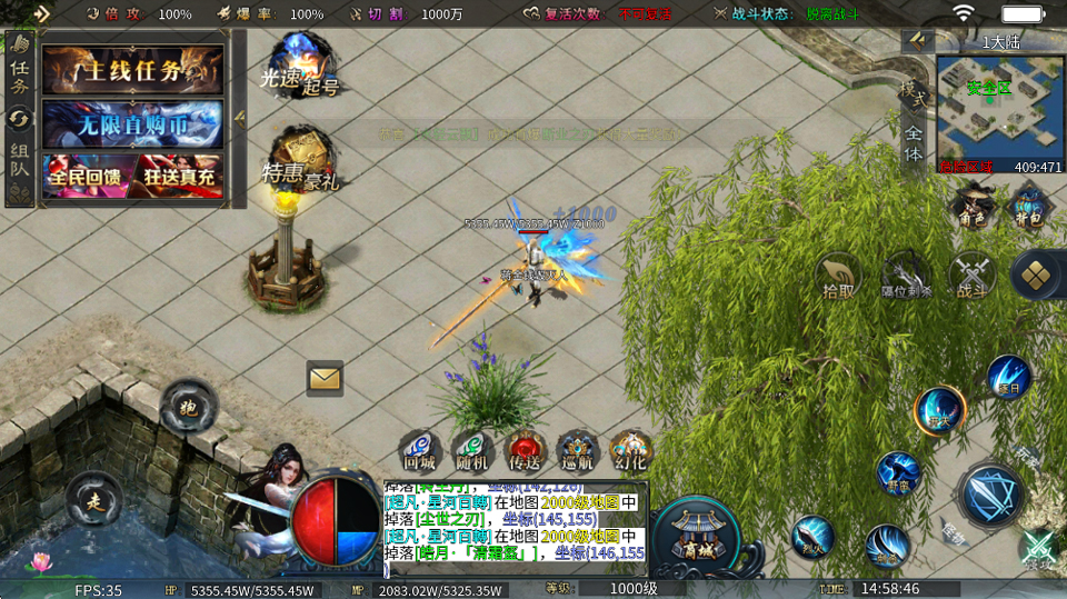 3、玩家可点击挂机自动战斗;