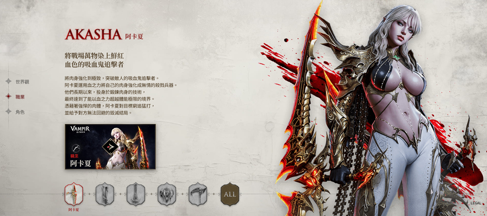 将肉身强化到极致,突破敌人吸血鬼追击者的追捕。阿卡夏运用血之力将自己的肉身强化成无情的杀戮兵器。他们长期以来,投身于锻炼肉身的技艺,最终达到了能以血之力超越体能极限的境界。凭借强悍的肉体,阿卡夏对目标紧追不舍、猛烈攻击,并给予对方无法逃避的毁灭结局。