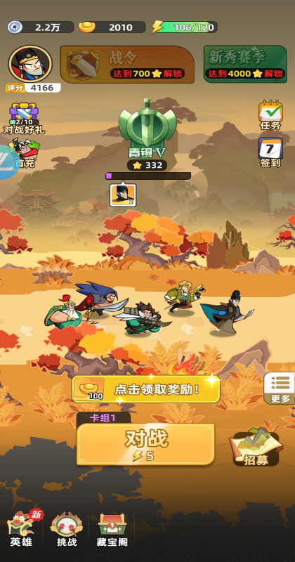 青铜3的时候送了廉颇,安排上阵,这套前期阵容都是送的,一定可以凑齐