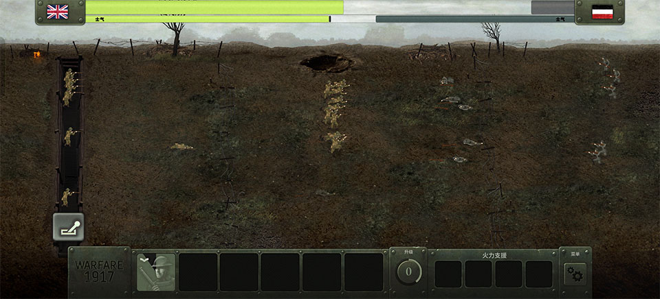 5、最后我们还能点击左下角的图案来操控小兵出战壕前压。