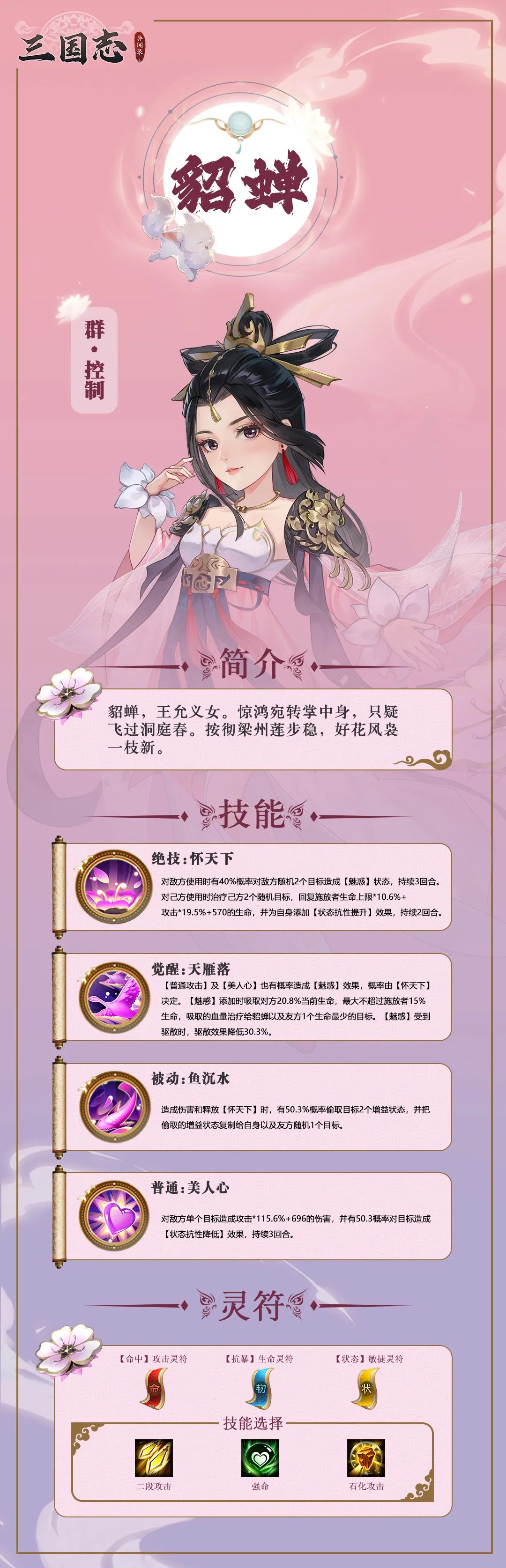 【定位】经典群攻武将,大招兼具爆发及沉默效果,适合速攻流阵容