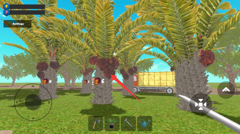 棕榈油种植园模拟器是一款第一人称视角的农场和物流模拟游戏。玩家能亲身体验种植、养护、收获及销售新鲜果串给工厂或收购商的全过程。种植养护时要挖坑种油棕幼苗、施肥、清理灌木,养护质量决定果实等级。收获用Egrek收割机,运输储存需手动收集装入卡车车厢。还有动态经济,棕榈油价格每日波动。可从小农户起步,升级土地、工具和车辆,雇佣帮手,管理体力和成本,打造棕榈油帝国,成为真正的大亨。