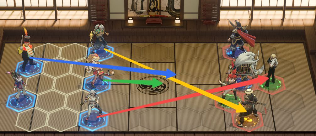 ② 李玲珑的技能也属于远攻,她的脚法会攻击最远的一名敌人(这里和李三的最远冲突了,所以李三会找第二远的勾),李玲珑直接一打多,可以连续出脚。