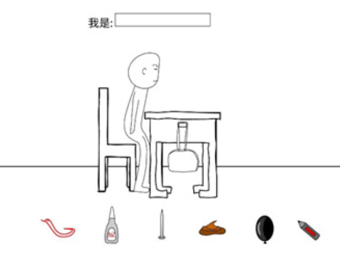 2、成功进入到关卡后玩法非常的简单只需要通过点击下方的道具来开始恶搞角色就可以了,高达六种不同类型的道具让玩家进行使用;
