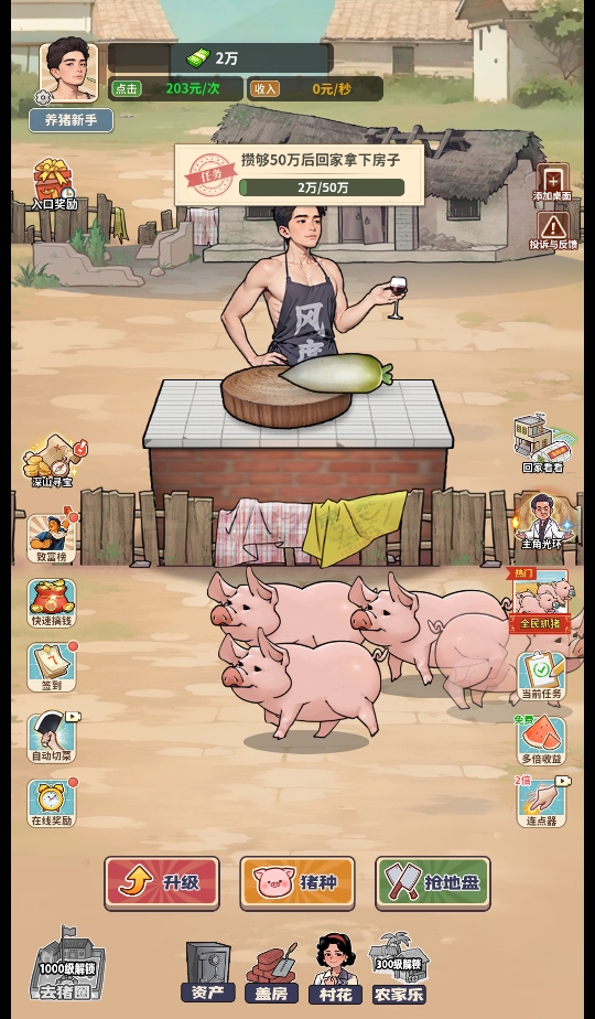 2、每天都可以领取新的奖励任务,玩家需要将自己的小猪,提升到更高的等级,才能获得丰厚的奖励,来提高品种。