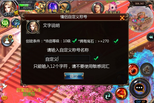 伴侣等级一共为10级,达到一定的伴侣经验则自动升级,达到10级还可在蜜恋时尚达人处消耗魔石自定义伴侣称号。