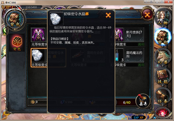 凡等级达到30级的冒险者,均可在军情密使处领取到密令水晶,并可直接通过密令水晶来获取与自身等级相符的军情密令委托。