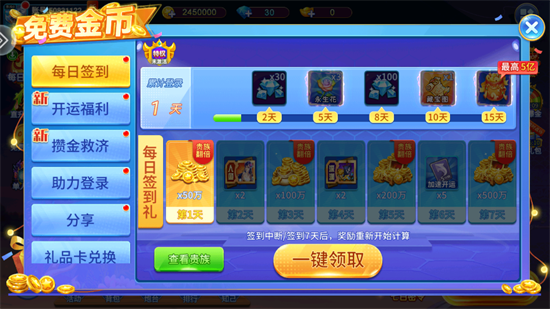 1.进入游戏签到即可领取丰厚的奖励