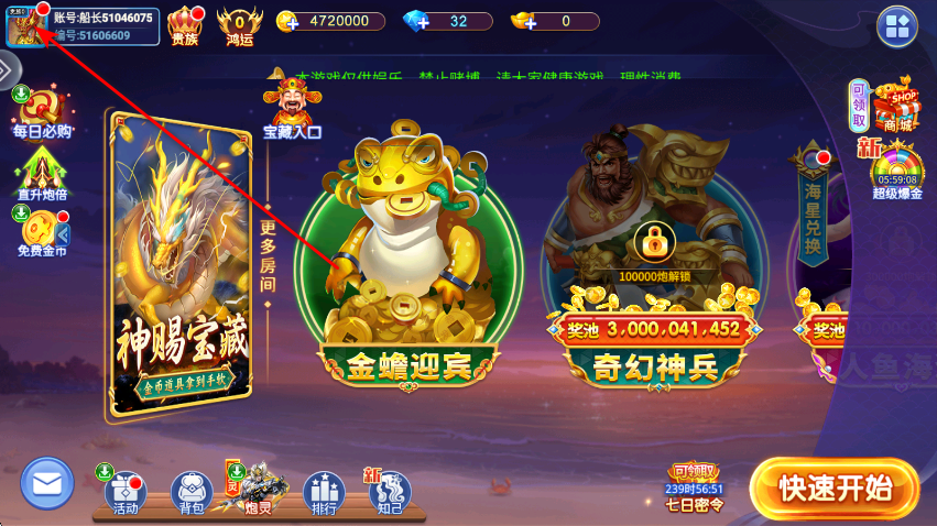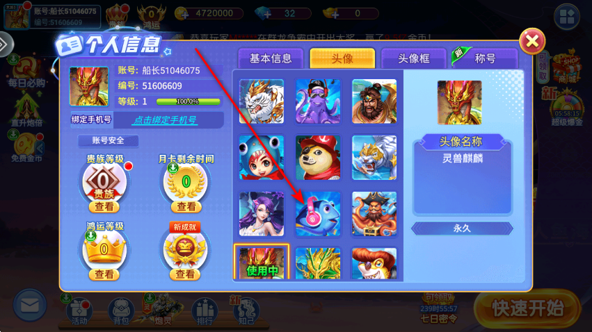 街机金蟾捕鱼2怎么换头像