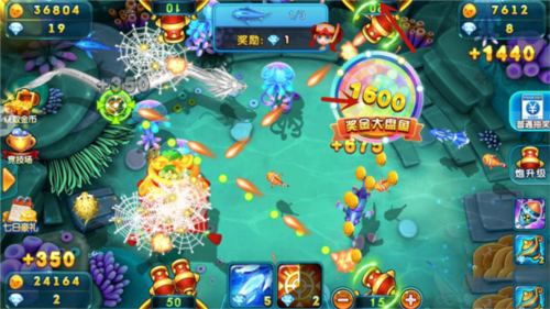攻打大鱼能获得更多金币和钻石奖励,但同时也需要消耗更多的金钻,如大白鲨、大金鲨、大海怪等。还要注意的是,如果大鱼还没游到你面前,你使劲拼命进攻也是捕捉不到的,还浪费金币。